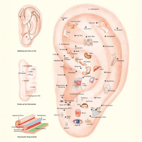 Das Ohr dient in der Traditionellen Chinesischen Medizin als Schaltzentrale unseres gesamten Organ- und Energiesystems. Durch die punktgenaue Stimulation ausgewählter Ohrpunkte können zentrale Steuerungsfunktionen aktiviert werden – so, als würden wir direkt an der „Chefetage“ Ihres Körpers ansetzen, um das globale Gleichgewicht zu fördern.